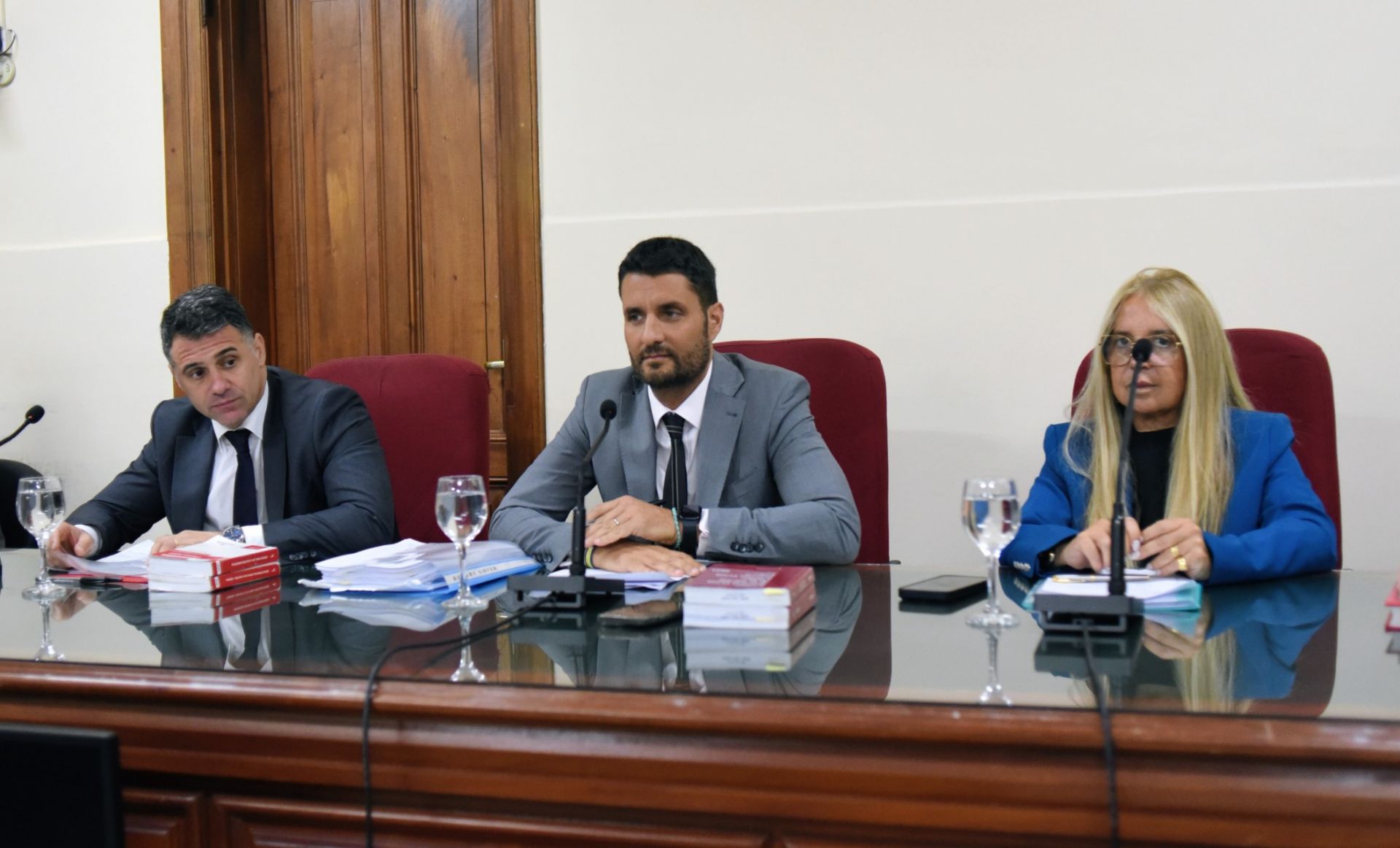 Allí está un grupo de mujeres, familiares de los acusados. Del otro lado se ubican los jueces, el fiscal, la querella, las denunciantes y la defensa con los acusados. En ese lado, escasos metros separan a la víctima y denunciante de quienes se sientan hoy en el banquillo de los acusados: productores, aplicadores, y funcionarios públicos municipales; protagonistas de un juicio con pocos precedentes.