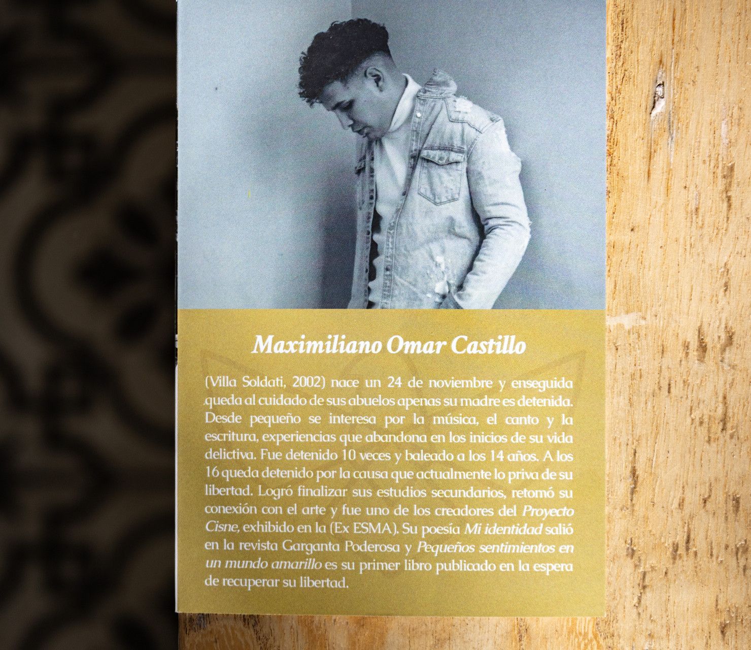 “Me subí a un re bondi y ahora tengo que viajar”, pensó Maxi, cuando empezó a imaginarse la publicación de su libro. Así, con esa reflexión, nació el poemario Pequeños sentimientos en un mundo amarillo. “Tenía que pedir permiso para usar una computadora, los cobanis (personal de seguridad) no pasaban mis pedidos de contactar gente, ni los pedidos de entrevistas. Para todo te ponían una traba”, dijo sobre el proceso de escritura.